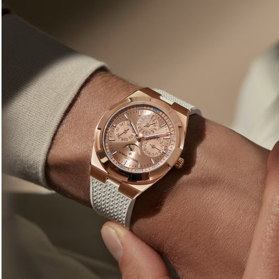 江詩丹頓 Overseas 系列超薄萬年曆粉紅金自動上鏈腕錶