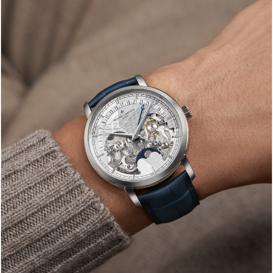 江詩丹頓 TRADITIONNELLE 系列 萬年曆逆跳日曆鏤雕鉑金自動上鏈腕錶