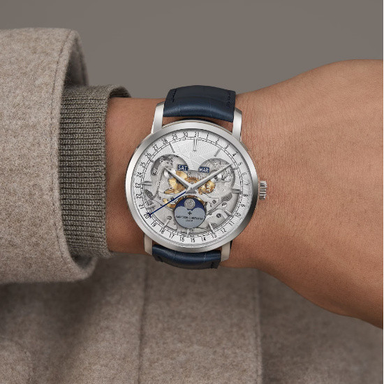 Vacheron Constantin TRADITIONNELLE collection Complete calendar openface platinum automatic wristwatch